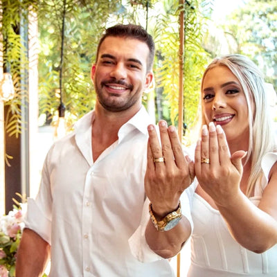 Aqui na Adamas você sempre ganha. Você tera 70% de crédito para trocar por um par de alianças mais moderno ou mais pesado.
